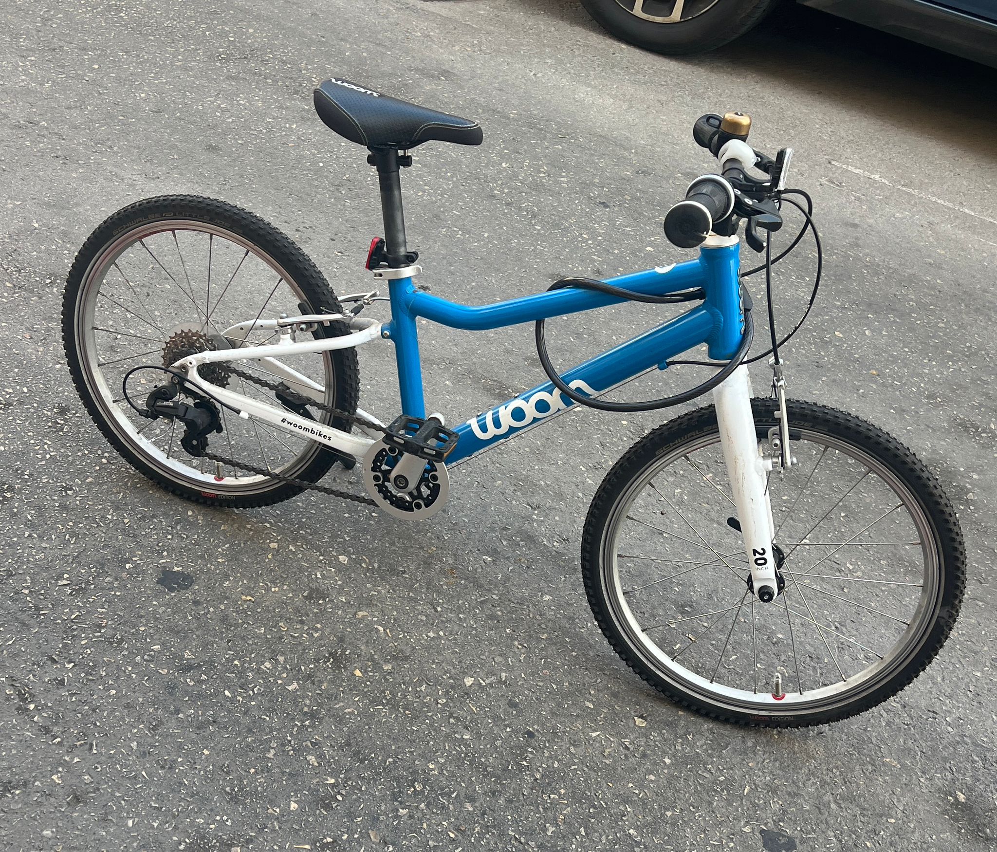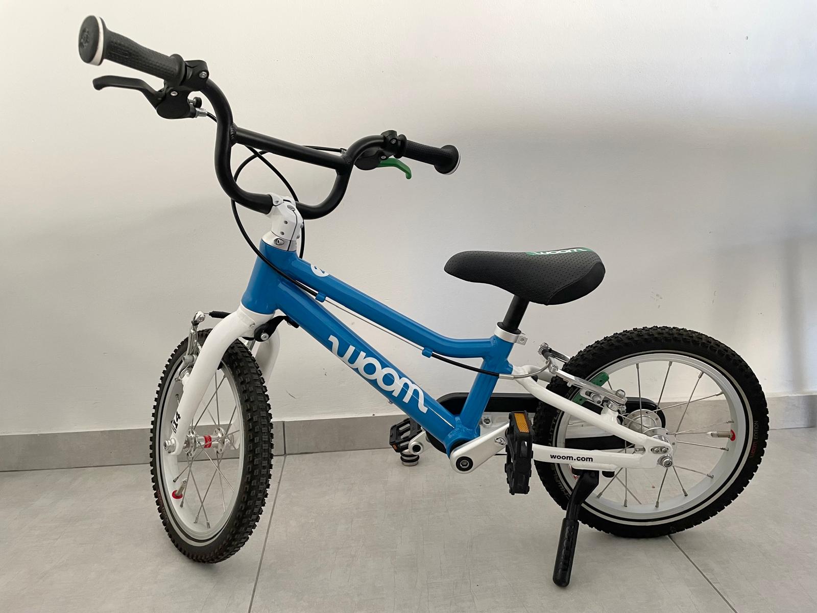 אופני woom ORIGINAL 4 בצבע כחול. נרכשו לפני כשנתיים ונמכרים בעקבות מעבר לגודל הבא.
